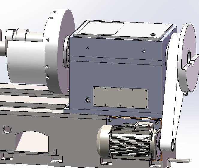 主軸傳動機構(gòu)采用伺服電機通過同步帶輪連接主軸帶輪上傳動,前后床頭同步驅(qū)動。主軸部分由定位盤、主軸軸承、主軸等組成。主軸的軸承采用高精度可調(diào)整徑向間隙的雙列向心短圓柱滾子軸承,因而主軸旋轉(zhuǎn)平穩(wěn),并且精度高。另外床頭箱設(shè)有專門的潤滑機構(gòu),以確保各潤滑點得到充分的潤滑。