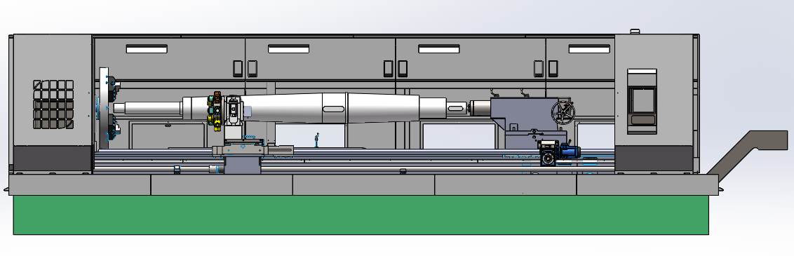 數(shù)控車銑復合機床是在大型臥式平床身車床基礎(chǔ)上開發(fā)的一款多功能新產(chǎn)品,床身重新優(yōu)化,整體加重,托板加長加寬加厚,可選配專用鏜刀座,可對零件內(nèi)孔進行切削加工,加工效率、精度及剛性優(yōu)于普通數(shù)控車床。采用半封閉防護結(jié)構(gòu),配置SIEMENS828D系統(tǒng)。車削主傳動為SIEMENS伺服主電機加減速機全無級變速結(jié)構(gòu),兩個聯(lián)動控制軸,X軸采用滾珠絲杠同步帶減速加交流伺服電機,Z軸精密斜齒條加交流伺服電機加精密減速機,實現(xiàn)伺服移動控制,具有很好的定位精度和重復定位精度。